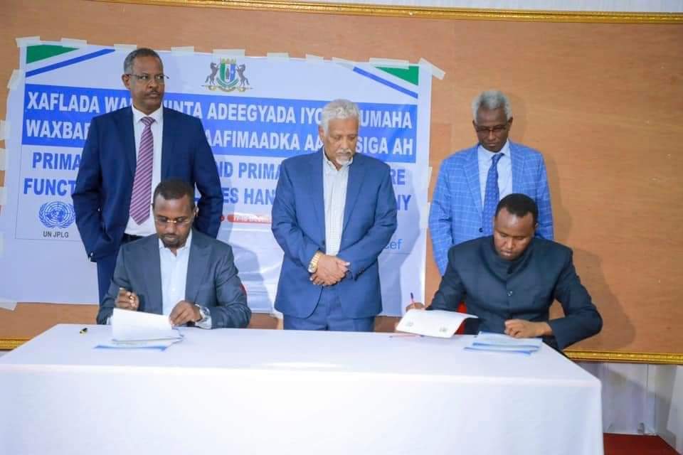 Madaxweyne Ku-xigeenka ayaa goob joog ka noqday madasha ay maamulka xarumahaas kula kala wareegayeen Wasaaradaha Caafimaadka iyo Waxbarashada iyo Degmooyinku isaga oo bogaadiyey horumarka laga gaadhay baahinta adeegyada bulshada oo maanta laga gaadhay guul la taaban karo.