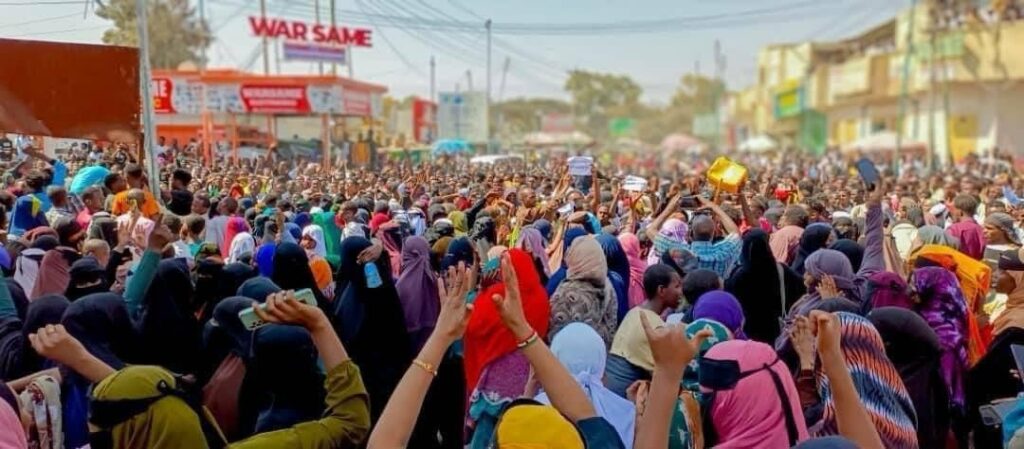 Dadka banaanbaxayeya,ayaa u badnaa dhalinyaro, waxayna socod ku mareen wadooyinka magaalada Boorama.
