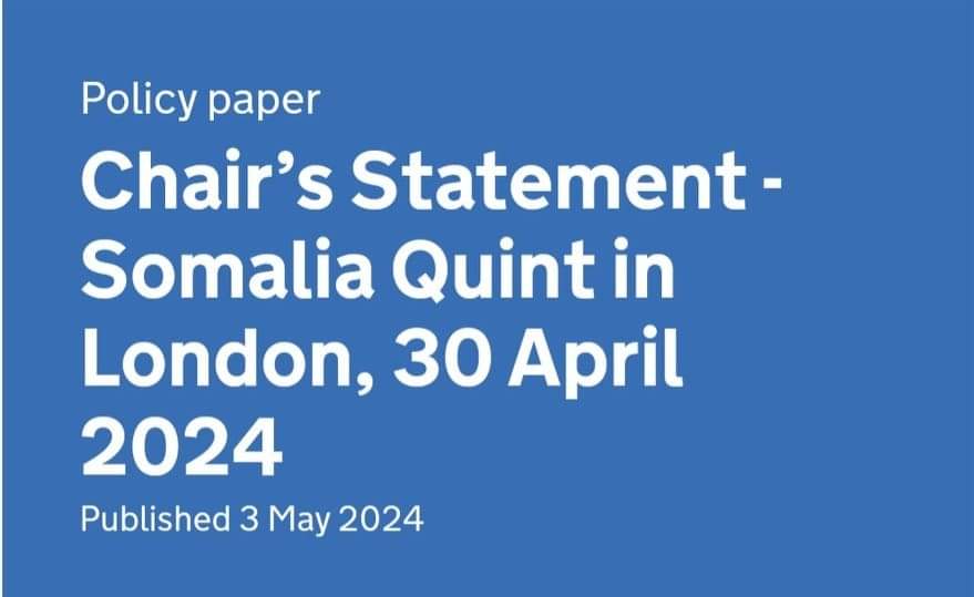 Representatives of the State of Qatar, the Republic of Türkiye, the United Arab Emirates, United Kingdom and the United States of America met in London on 30 April in an interagency format, on the occasion of the sixth meeting of the Somalia Quint. Federal Government of Somalia (FGS) representatives also participated in the meeting.