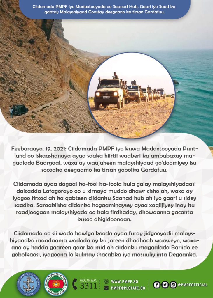 Halkaan Hoose ka Akhriso War-saxaafadeed ay baahiyeen Ciidanka PMPF Dowladda Puntland.