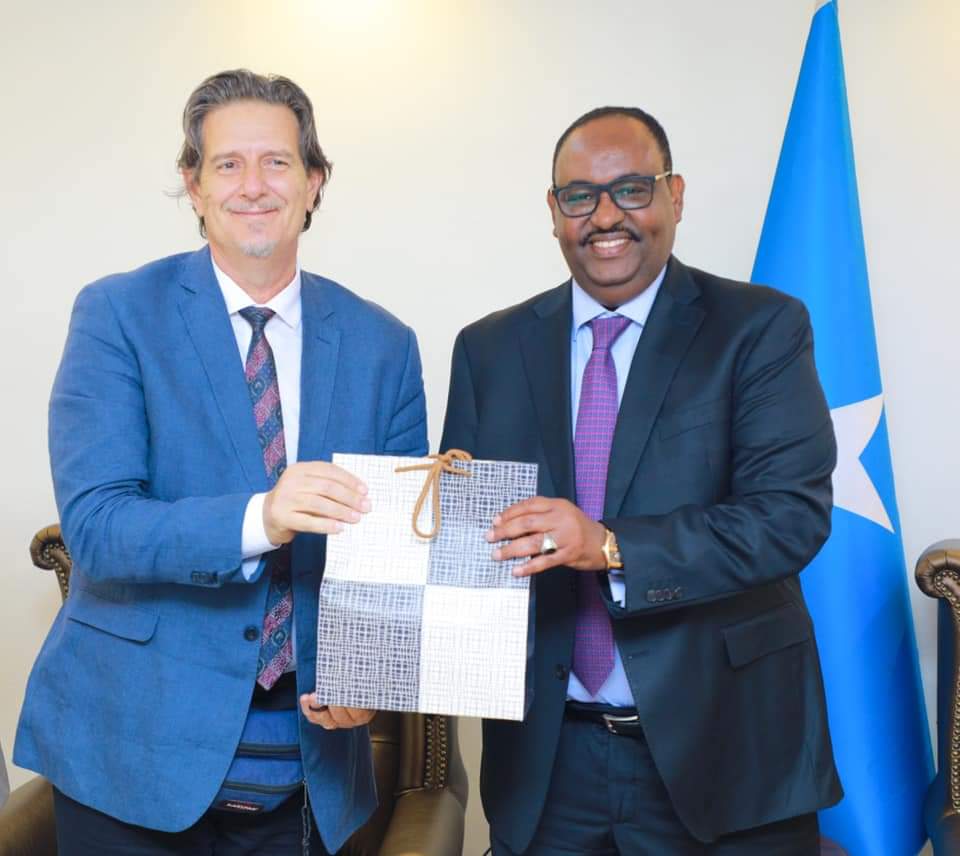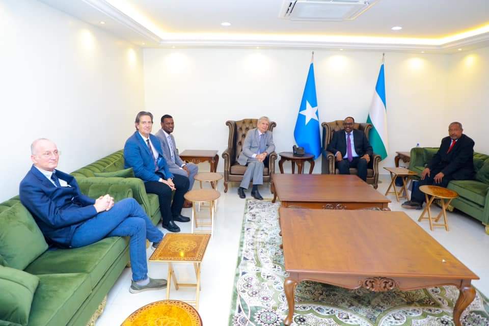 Share Facebook Twitter LinkedIn Pinterest Email Copy Link Garoowe: 25 January 2021: Madaxweynaha Dowladda Puntland Mudane Siciid Cabdullaahi Deni, ayaa Qasriga Madaxtooyada ee Garoowe ku qaabilay Madaxa Hay’adda Horumarinta ee Talyaaniga Guglielmo Giordano iyo wafdi uu hoggaaminayo.