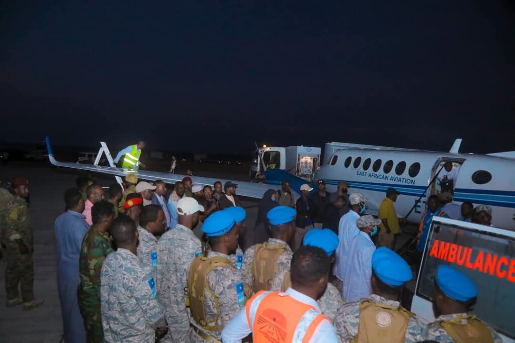 Boosaaso: 20 January 2025: Madaxweynaha Dowladda Puntland Mudane Saciid Cabdullahi Deni, ayaa galabta ka ambabixiyey garoonka diyaaradaha ee Boosaaso, Geesi ka mid ah Ciidanka Dowladda Puntland kaasi oo ku dhaawacmay Hawlgalka Ciribtirka Argagixisada ee Puntland isla markaana caafimaad loogu diray dalka dibediisa.