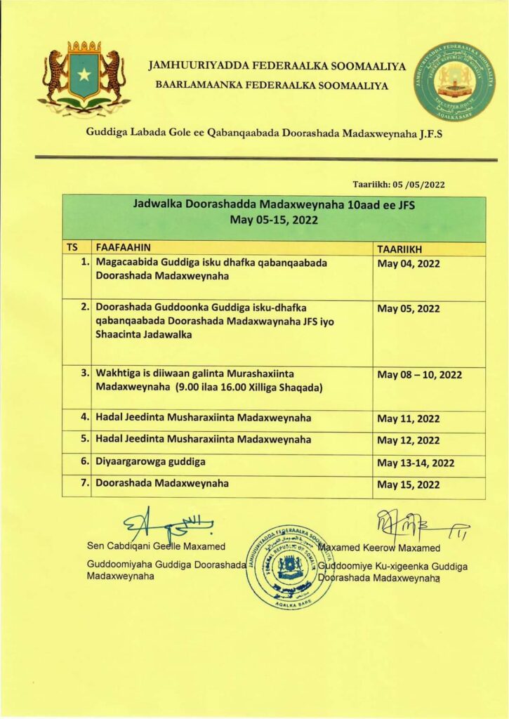 Haddii guddiga uu dhaqan-geliyo jadwalkan, waxa ay soo geba-gebeeneysa dib u dhac 15 bilood ah oo ku yimid doorashada madaxweynaha, ayada oo muddo xileedkii Farmaajo uu dhammaaday bishii Febraayo 2021.