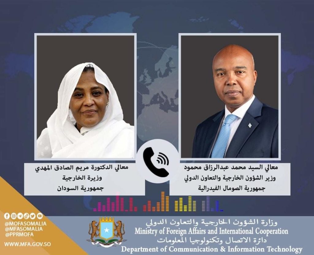 Wasiir Maxamed Cabdirisaaq Maxamuud, ayaa khadka teleefoonka kula xiriiray dhiggiisa Suudaan, Marwo Dr. Maryam Al-Sadiq Al-Mahdi, oo ay ka wadahadleen xiriirka labo geesoodka ee labada dal ee walaalaha ah iyo siyaabihii lagu xoojin lahaa , laguna qoto dheereyn lahaa.