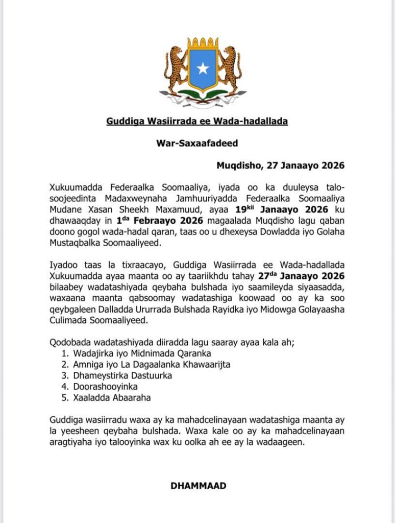 Marka,waxaa laga rabaa GMS in aysan fursadaas siin oo ay toos u abaaraan qodobka hortabinta leh ee baahidiisu hada taagan tahay,kaasoo ah doorashada,waana in mudada yar ee harsan laga gaaraa isafgarad nidaam doorasho oo loo dhan yahay in lawada qaato.