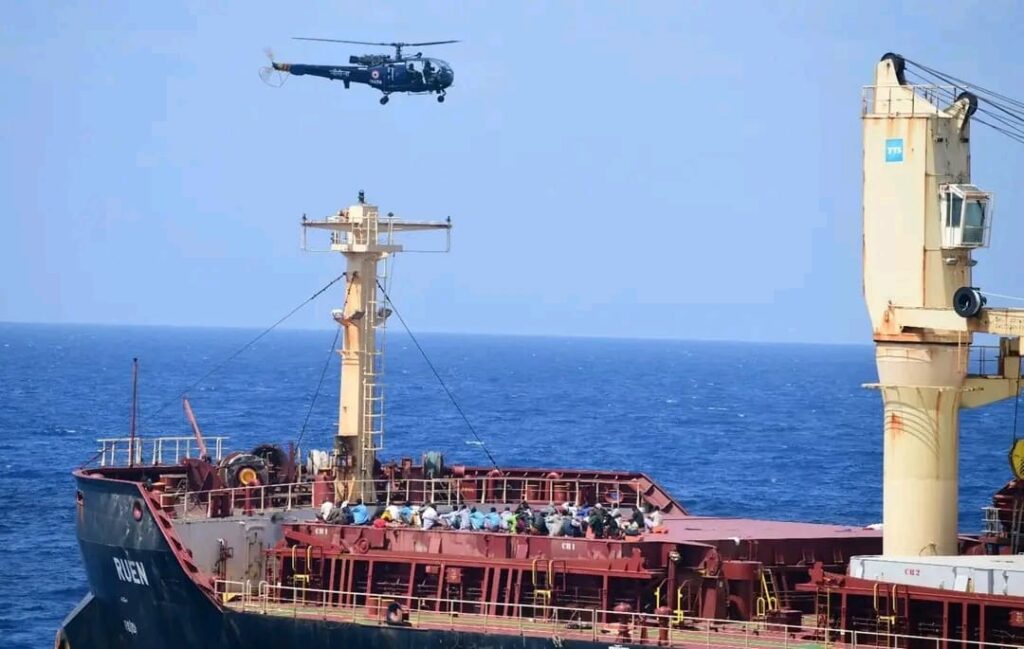 The navy said in a post on social media platform X that all 35 pirates aboard the ship, the Maltese-flagged bulk cargo vessel Ruen, had surrendered, and the ship had been checked for the presence of illegal arms, ammunition and contraband.