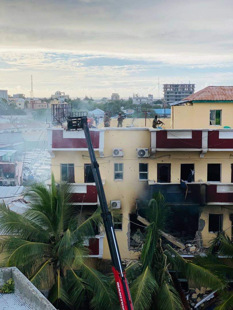 Amarkan,ayaa yimid ka gadaal markii ay adkastay soo afjarida Maleeshiyada ku jirta dhismaha Hotelka.