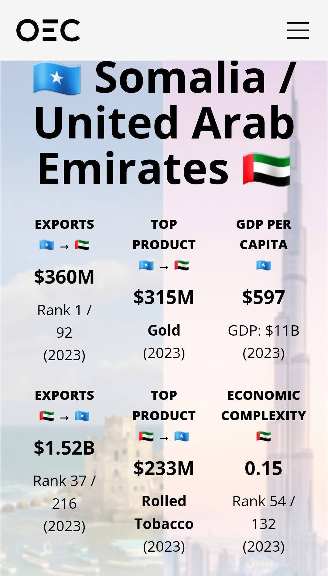 Isdhaafsiga ganacsi ka dhexeeya Somaliya iyo Imaaraadka Carabta?
