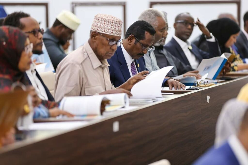 Guddoomiyaha Guddiga Dib-u-eegista Dastuurka ee Baarlamaanka labadiisa aqal Xil. Xuseen Iidoow, oo Xildhibaannada hortooda ka aqriyay warbxinta 1-aad ilaa iyo 4-aad, isagoona sheegay in Xildhibaannada loo qeeybiyay nuqulka kama dambeysta ah ee ay soo diyaariyeen Guddiga Madaxbanaan ee Dib-u-eegista iyo Hirgelinta Dastuurka.