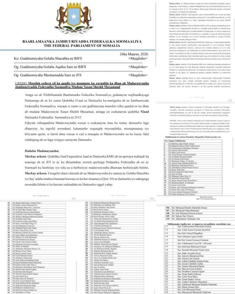 Maalmihii ugu danbeeyay,ayay wadeen Xildhibaanadu diyaarinta Mooshinkan.