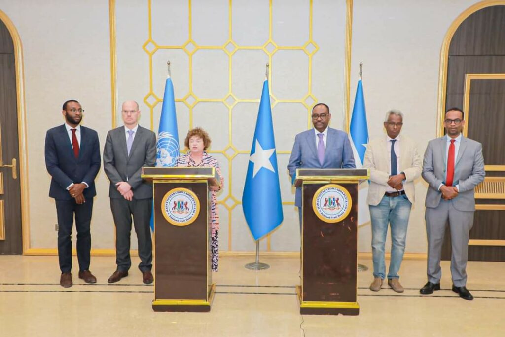 Garoowe: 11 November 2023: Madaxweynaha Dowladda Puntland Mudane Siciid Cabdullaahi Deni, ayaa maanta Qasriga Madaxtooyada ku qaabilay Ergayga Qaramada Midoobey ee Soomaaliya Catriona Liang iyo wafdi ay hoggaaminayso.