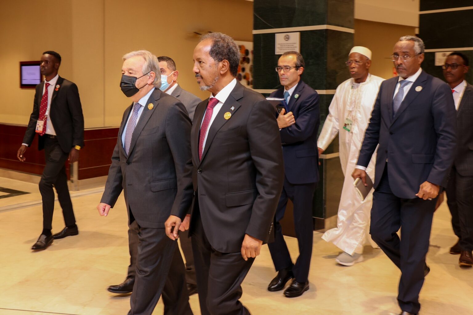 Weftiga Somaliya ee ka qaybgalaya Shirka Jaamacada Carabta ee Aljeeriya oo uu hogaaminayo Madaxweyne Xasan,ayaa la kulmay Xoghayaha guud Qaramada Midoobey Antonio Guterres.