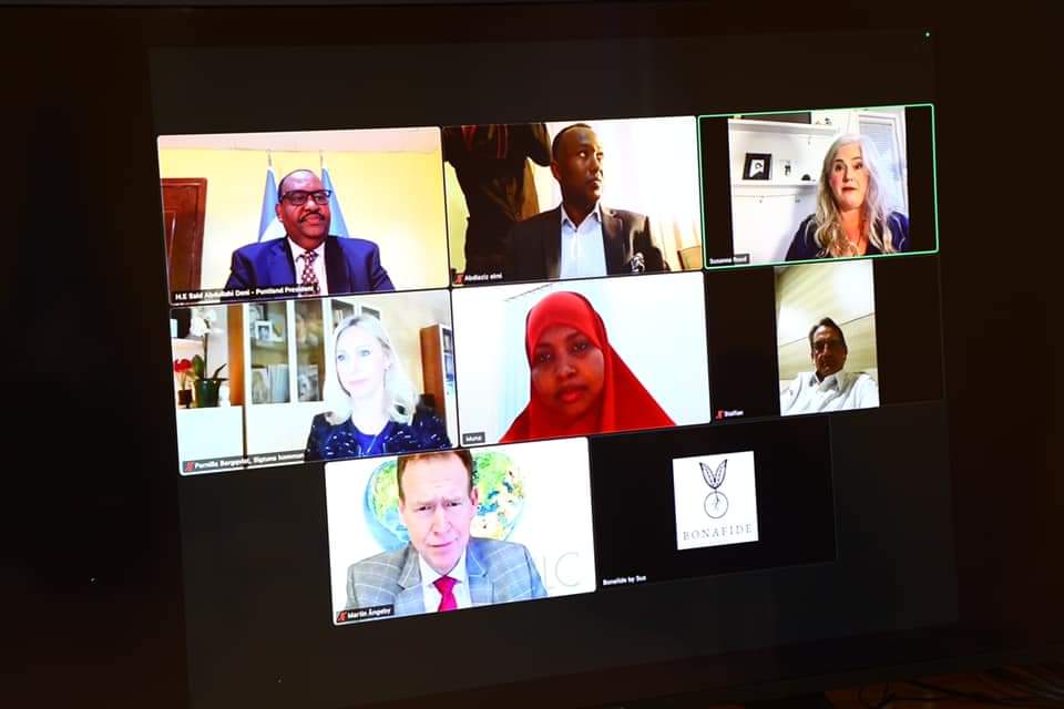 Garoowe: 22 January 2021 : Madaxweynaha Dowladda Puntland Mudane Siciid Cabdullaahi Deni, ayaa galabta hab maqal iyo muuqaal ah kulan kula yeeshay Safiirka Sweden ee Soomaaliya Stefan Tillander oo ay weheliyaan Masuuliyiinta ka tirsan Dowladda Sweden iyo Madaxda Hay’adda Diakonia ee Soomaaliya.