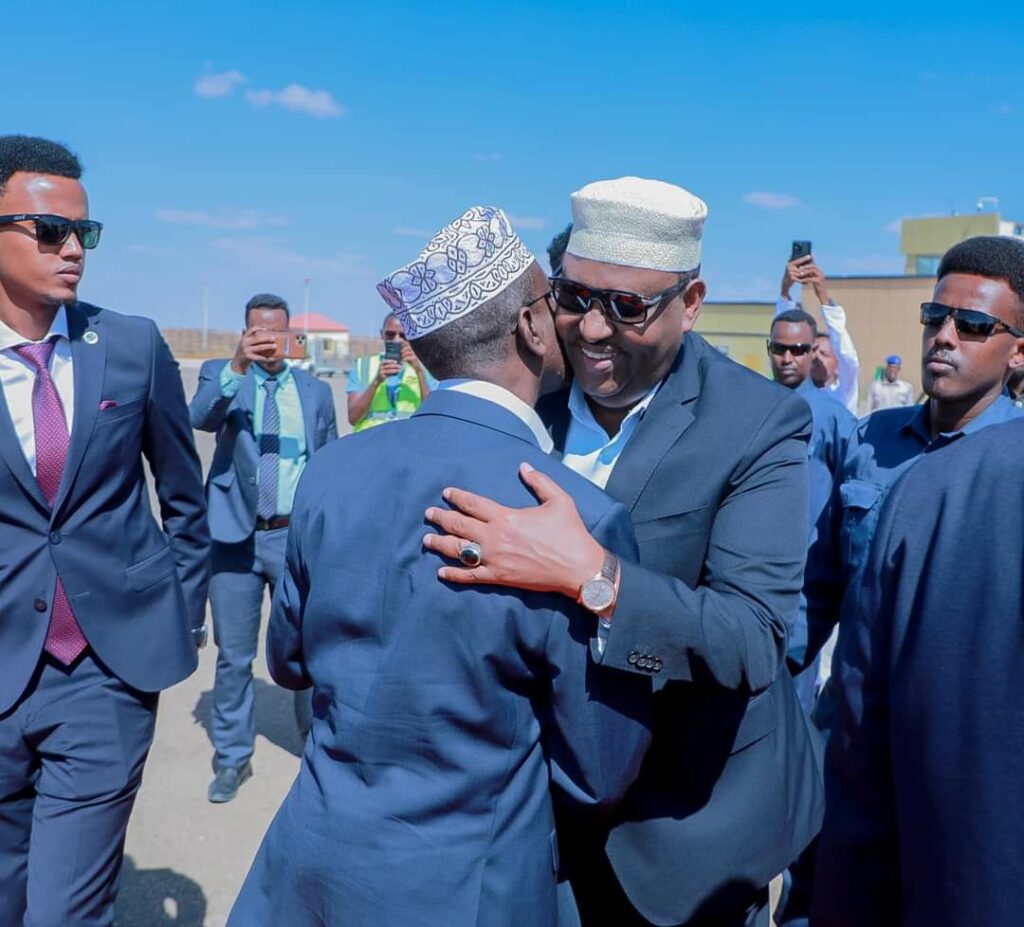Share Facebook Twitter LinkedIn Pinterest Email Copy Link Garoowe: 22 March 2024: Madaxweynaha Dowladda Puntland Mudane Siciid Cabdullaahi Deni, ayaa garoonka diyaaradaha ee Garoowe kusoo dhoweeyay Madaxweynihii hore ee Soomaaliya Mudane Shiikh Shariif Shiikh Axmed iyo wafdi uu hoggaaminayo.
