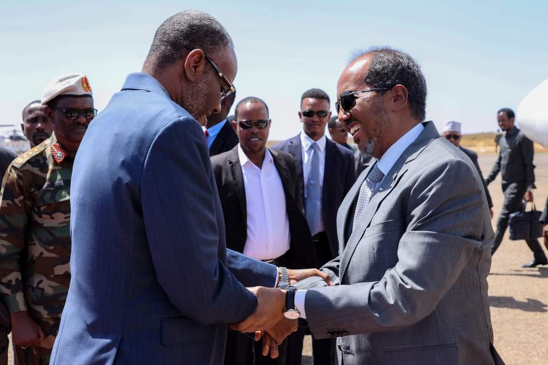 Madaxweynaha iyo waftigiisa waxaa si diiran ugu soo dhaweeyay Garoonka Diyaaradaha Shaati Guduud ee Magaalada Baydhabo Madaxweynaha Dowlad Goboleedka Koonfur Galbeed Mudane Cabdicasiis Xasan Maxamed, Mas’uuliyiin ka kala socday Heer Federaal iyo Heer Dowlad Goboleed iyo qaybaha kala duwan ee Bulshada.