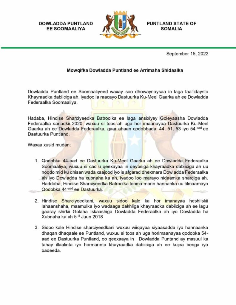 Home»Somalia»Mowqifka Dowladda Puntland Ee Arrimaha Shidaalka.