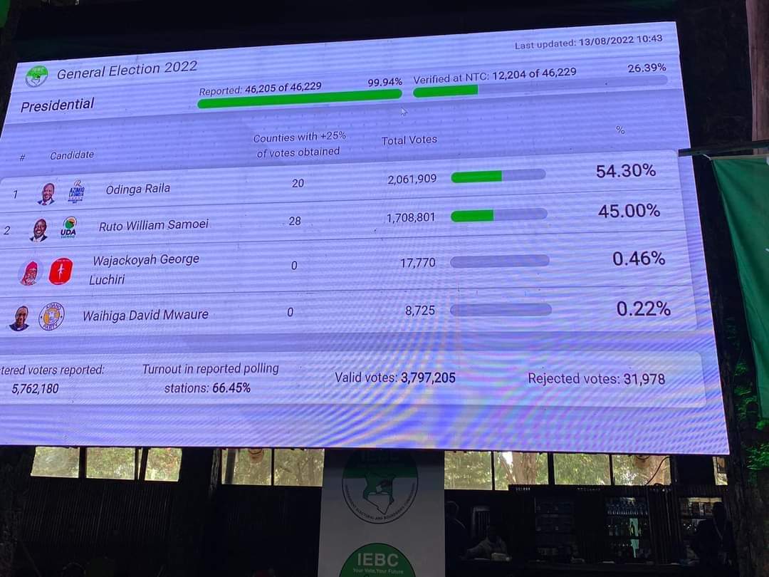 Si waafqasan sharciga Kenya, Guddiga doorashooyinka ee IEBC ayay tahay in ay shaaciyo natiijada rasmiga ah ee doorashada Madaxweynaha.
