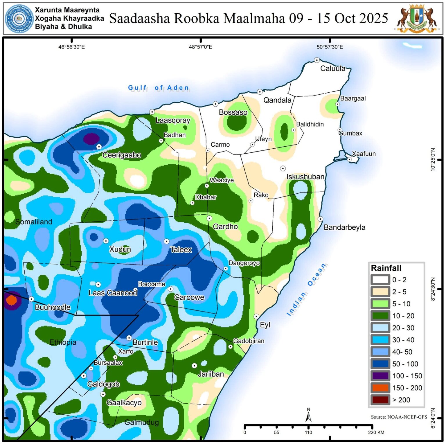 Puntland:-Saadaasha Roobka Ee Maalmaha 09-15 OKTOOBAR 2025