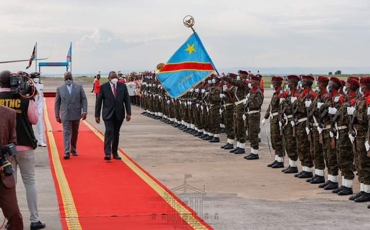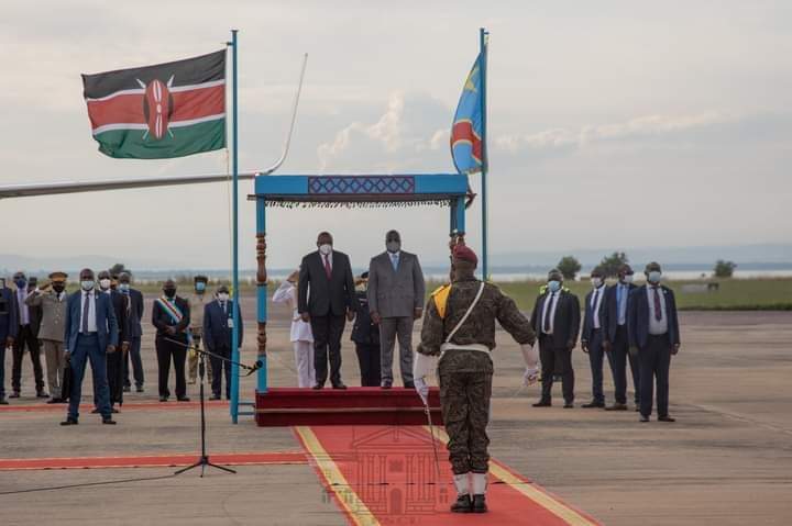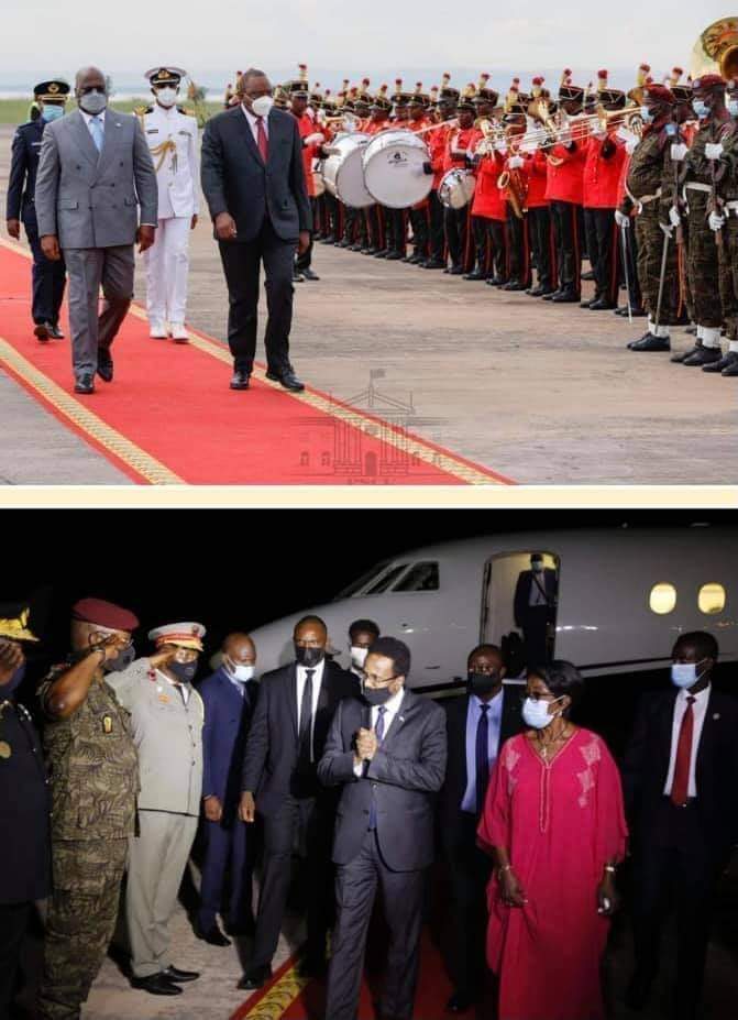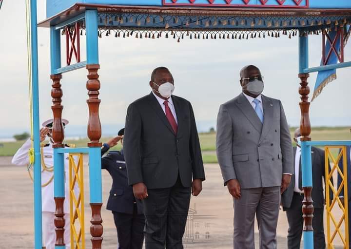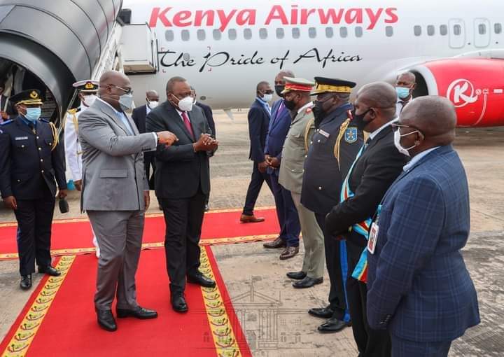 Madaxweynaha Dalka Kenya Uhuru Kenyatta, ayaa ka degay Magaalada Kinshasa ee Caasimadda DR Congo, saacado uun kaddib markii uu isaga soo laabtay Madaxweynaha muddo-xileedkiisu dhamaaday ee DFS Mohamed Abdullahi Farmaajo.