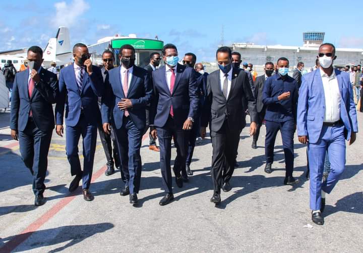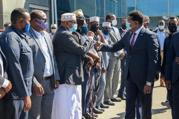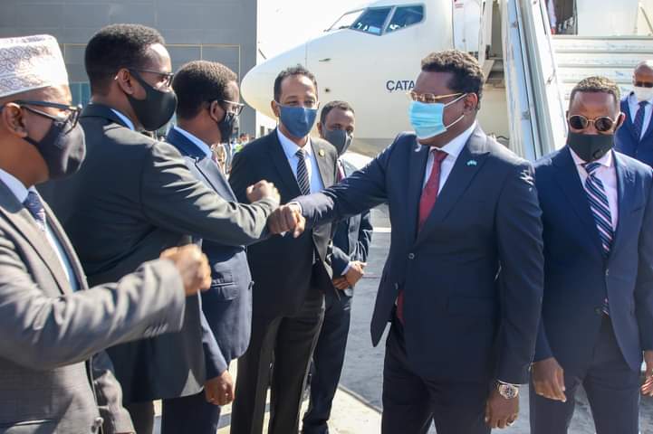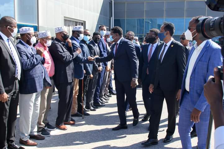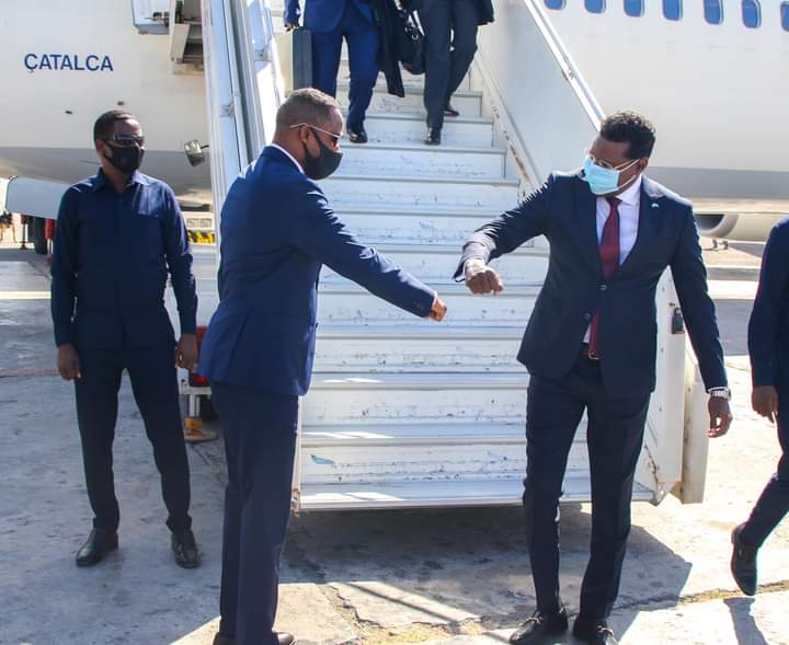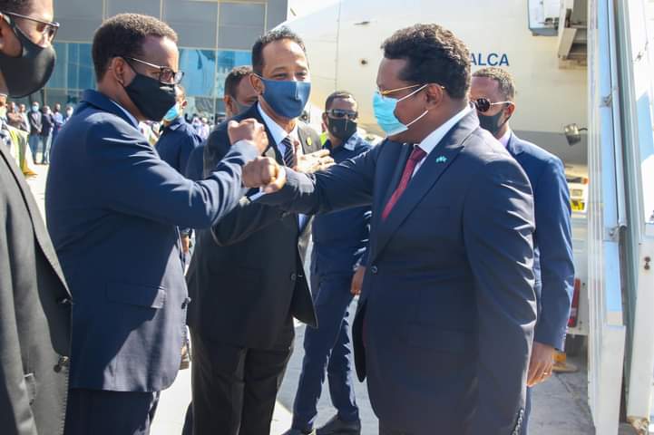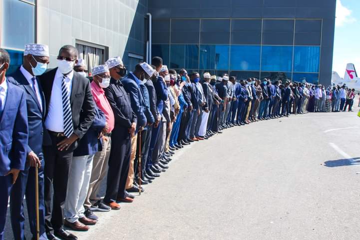 Xubno kamid ah Labada Gole ee DFS, Maamulka Gobalka Banaadir iyo Masuuliyiin kale ayaa kusoo dhaweeyay Madaxweyne Qoorqoor garoonka diyaaradaha Aadan Cadde ee Muqdisho.