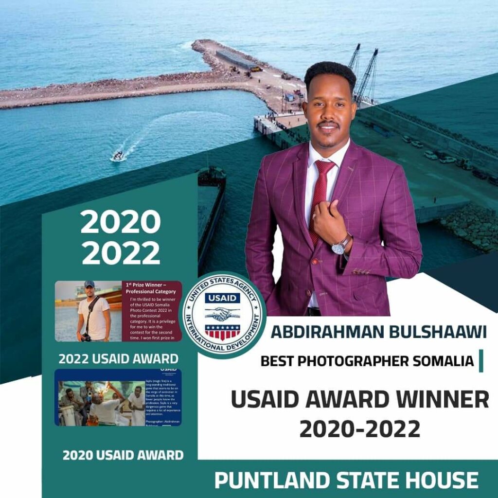 Cabdiraxmaan Bulshaawi Sawir qaadaha Madaxweynaha Puntland, waa markii labaad ee uu ku guuleysto abaalmarinta Sawir qaadaha sanadka ee ay bixiso Hay’adda USAID, waxayna ahayd sanadkii 2020-kii markii koowaad ee Abaalmarintan ku Guulaysto.