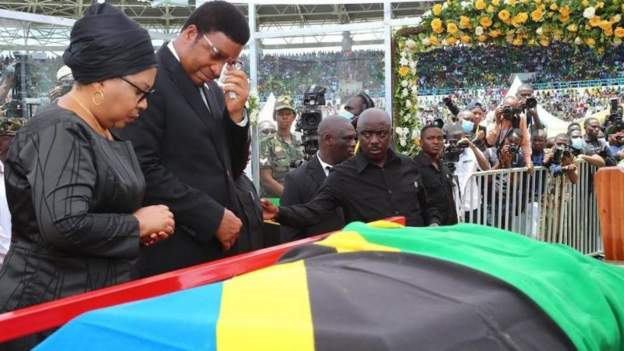 Dad aad u tiro badan oo Tanzanian ah ayaa iyaga oo murugaysan dhugashadii ugu dambaysay ee sagootinta ahayd la dul tagay maydka madaxweyne John Magufuli oo Arbacadii dhintay.