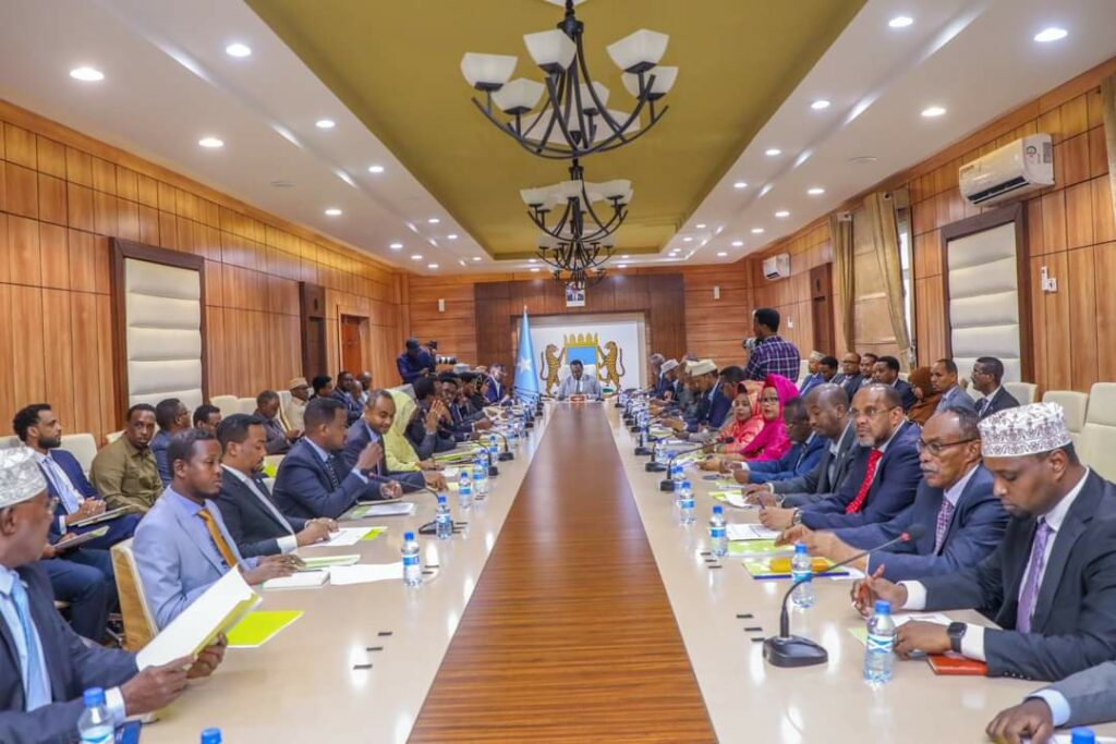 Ra’iisul Wasaare ku xigeenka Xukuumadda Federaalka Soomaaliya Mudane Salah Jama, ayaa maanta guddoomiyey shirka toddobaadlaha ah ee Golaha Wasiiradda oo looga hadlay arrimaha Amniga dalka, Abaaraha, Shirkii Golaha Wadatashiga Qaranka ee dhowaan qabsoomay iyo ansixinta heshiiska tababarka iyo iskaashiga dhinacyada caafimaadka ciidamadda ee u dhexeeya Soomaaliya iyo Turkiya.