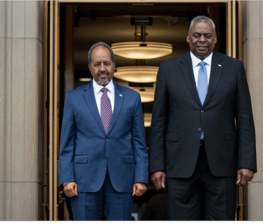 Mohamud thanked Austin for America’s aid and support over more than three decades. While still facing tremendous hurdles, the country is closer to peace than it has been for a long time, the president said. “I would like to extend my gratitude to the United States government for the assistance to the Somali people in our fight against al-Shabaab,” he told Austin.
