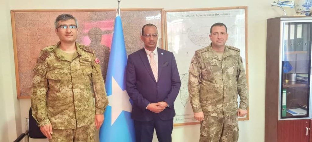 Wasiirka Wasaaradda Gaashaandhigga Xukumadda Soomaaliya ahna Senator-ka la doortay Xasan Xuseen Xaaji ayaa ku qaabilay xafiiskiisa u qeybsanaha arimaha Ciidanka Dowladda Turkiga ee Soomaaliya.