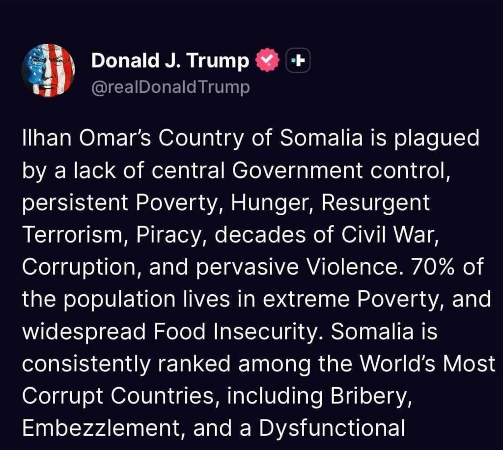 Trump,ayaa hadaladiisa ku muujiyay walaac ku saabsan mustaqbalka Soomaaliya iyo sida siyaasadda gudaha iyo dibadda ay u saameynayaan shacabka