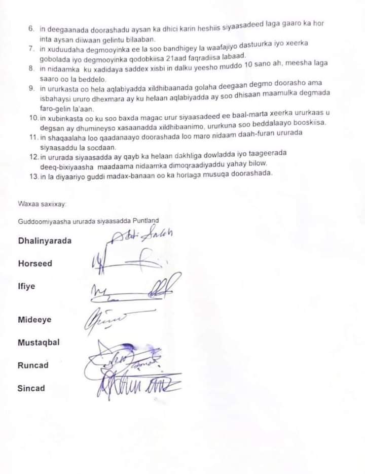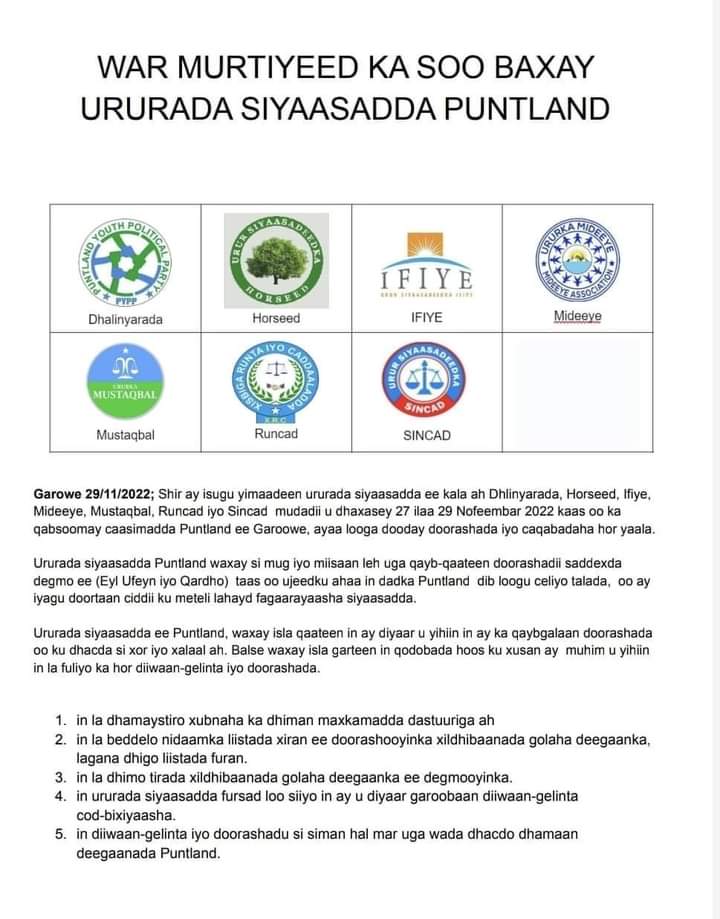 Home»Somalia»Ururada Siyaasada Puntland oo shuruudo ku xiray Doorashada