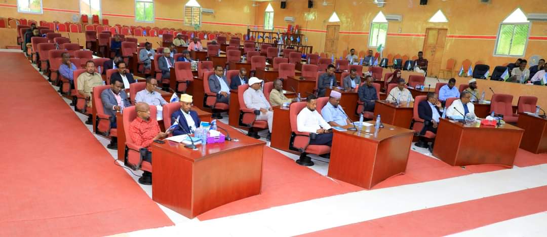 Garoowe, Luulyo 30, 2022: Guddoomiyaha Golaha Wakiillada Dawladda Puntland Mudane Cabdirashiid Yuusuf Jibriil, oo uu wehliyo Guddoomiye ku-xigeenka 2aad Mudane, Ismaaciil Maxamed Warsame ayaa Shir-Guddoomiyey fadhiga 30-aad, Kalfadhiga 50-aad ee Golaha Wakiillada Dawladda Puntland.
