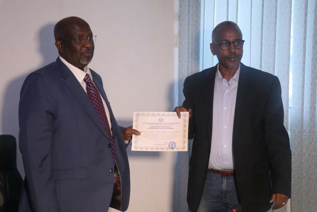 Guddiga qabanqaabada doorashoyinka Guddonka Golaha Shacabka BJFS,ayaa maanta shahaadada musharraxnimo gudoonsiiyey Shiikh Aadan Maxamed Nuur (Madoobe.)