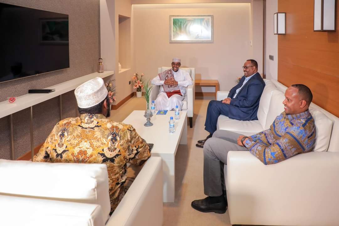 Raβiisul Wasaaraha XFS Maxamed Xuseyn Rooble,ayaa caawa Muqdisho kula kulmay madaxweyneyaasha Puntland iyo Jubaland Siciid Cabdullaahi Deni iyo Axmed Maxamed Islaam iyagoo ka wada hadlay qabanqaabada shirka Golaha Wadatashiga Qaran ee dardargelinta doorashooyinka dalka oo ka furmaya Muqdisho,hoos ka daawo muuqaalka.