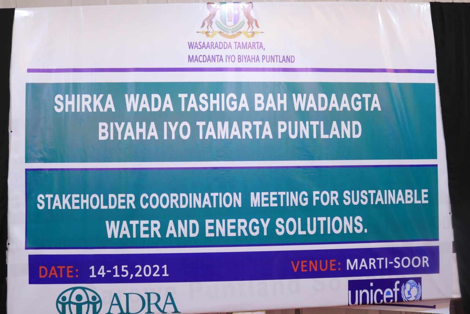 Shirka oo socon doona muddo labo maalmood ah ayaa diirada lagu saari doonaa sidii loo horumarin lahaa Biyaha iyo Tamarta Puntland, iyadoona si gaar ah loogu gorfayn doono caqabadaha jira iyo guulaha laga gaaray dhanka Horumarinta Biyaha iyo Tamarta Puntland.