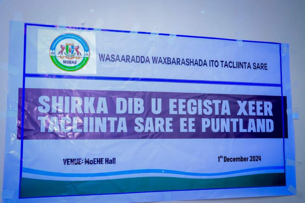 Garoowe, Diseembar 01, 2024: Wasiiru-Dawlaha Wasaaradda Waxbarshada iyo Tacliinta Sare ee Puntland Mudane Cabdisalan Cali Faarax oo ay weheliyaan Agasimaha Guud Mudane Maxamed Cali Nuur Jubba iyo Agasimaha Tacliinta Sare Mudane Cabdirisaaq Maxamed ayaa daahfuray shirka Wadatashiga Dib u- eegista Xeerka Tacliinta Sare ee Puntland.