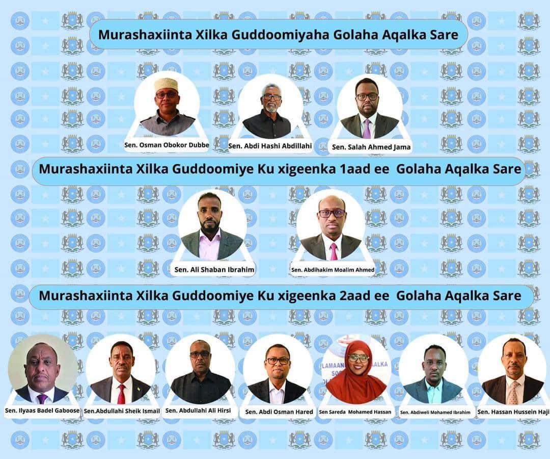 Guddoonka Golaha Aqalka Sare waxaa isku soo sharraxay Labo iyo Toban Murashax oo kala ah:-