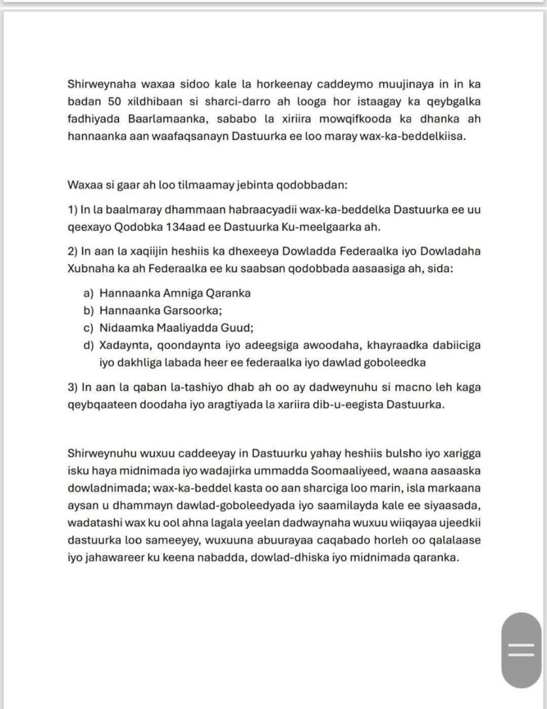 Warmurtiyeed kasoo baxay Shirweynaha Difaaca Dastuurka