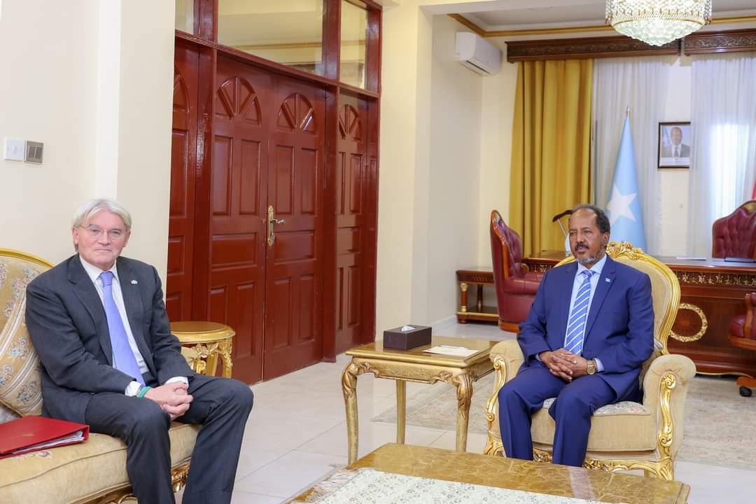 Madaxweynaha Jamhuuriyadda Federaalka Soomaaliya Xasan ShIikh Maxamuud oo Madaxtooyada dalka kulan kula qaatay Wasiirka Horumarinta iyo Arrimaha Afrika ee dowladda Ingiriiska mudane Andrew Mitchell ayaa kala hadlay xoojinta xiriirka labada dal iyo taageerada muhiimka ah ee dowladda Ingiriisku ay siiso Somaliya.