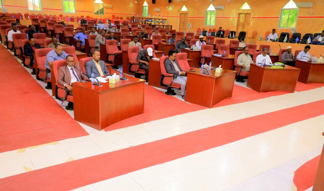 Garoowe, December 06, 2022: Guddoomiyaha Golaha Wakiillada Dawladda Puntland Mudane, Cabdirashid Yusuf Jibril oo ay wehliyaan Guddoomiye ku xigeenka 1-aad Cabdicasiis Cabdullahi Cismaan iyo Guddoomiye ku xigeenka 2-aad Ismaaciil Maxamed Warsame, ayaa maanta shir Guddoomiyey fadhiga 18-aad ee Kalfadhiga 51-aad Golaha Wakiillada DPL.