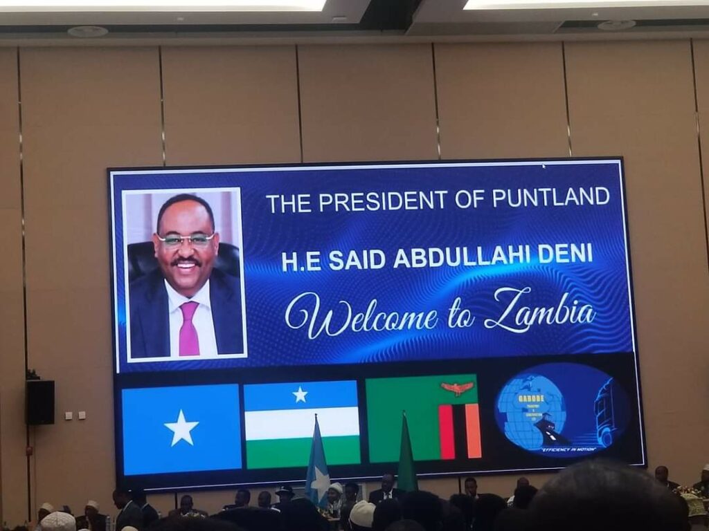 Jaaliyadda Soomaaliyeed ee ku nool Dalka Zambia oo xaflad weyn oo soo dhoweyn ah Xalay u sameeyay Madaxweynaha Dowladda Puntland Mudane Siciid Cabdullaahi Deni iyo Wafdiga la socda , ayaa taageero iyo garab istaag u muujiyey Shaqooyinka ay wado Dowladda Puntland iyo Doorashada hal qof iyo cod ee Goleyaasha deegaanka degmooyinka Puntland.