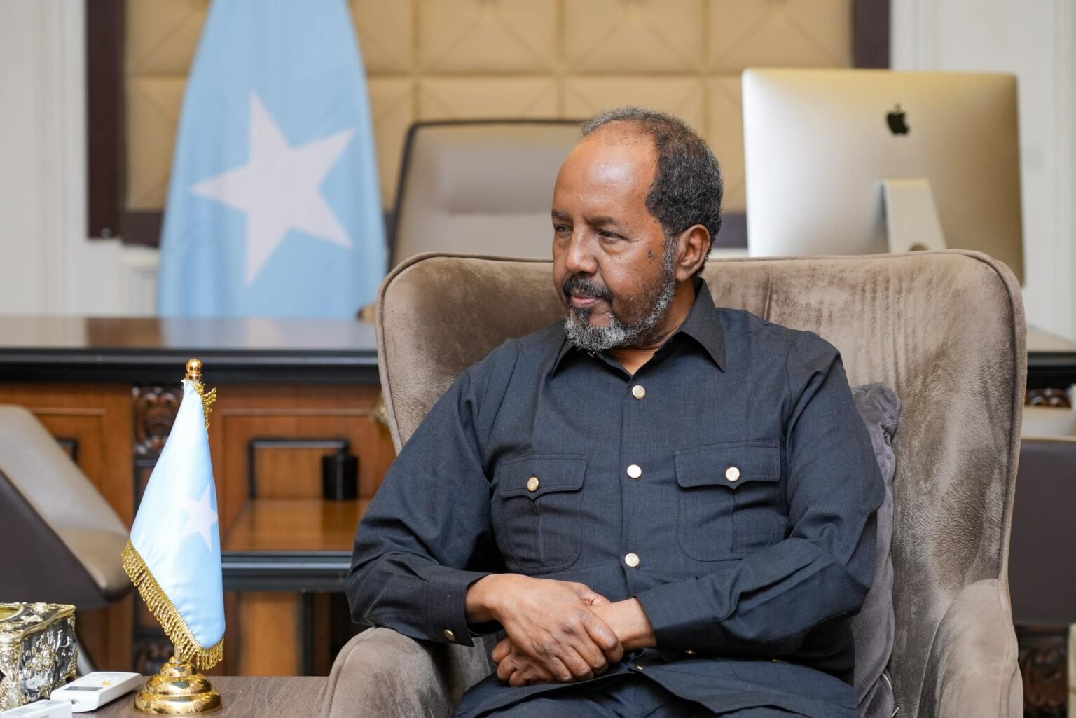 Xassan Shiikh oo ku sugan Dhuusamareeb,ayaa horey loogu eedeeyay in uu raalli ka yahay duullaanka Taliska Muuse Biixi kusoo qaaday shacabka Laascaanood, kaas oo galay bishii 8aad.