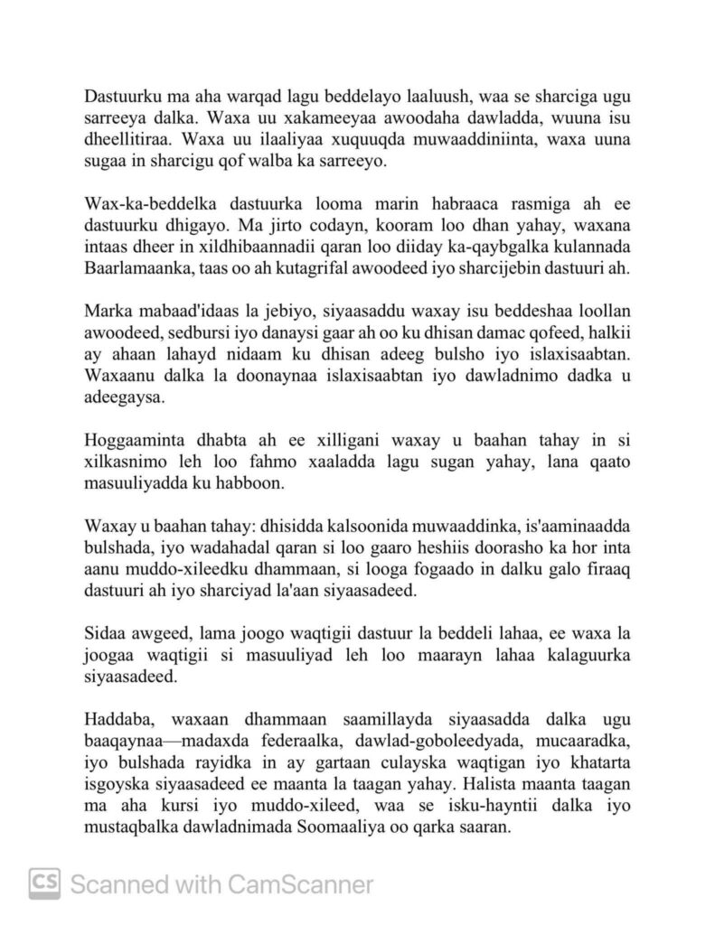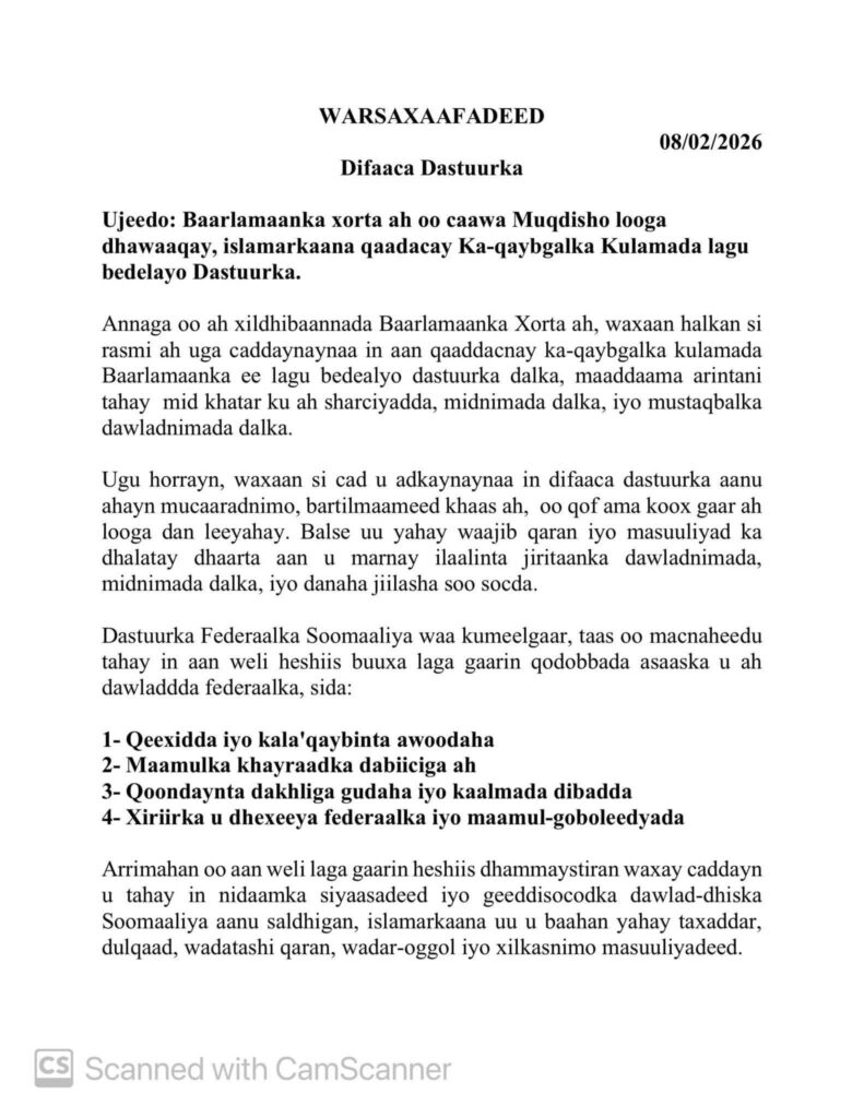 Baarlamaanka xorta ah ee lagu dhawaaqay,wuxuu ku filan yahay Laba Qodob….