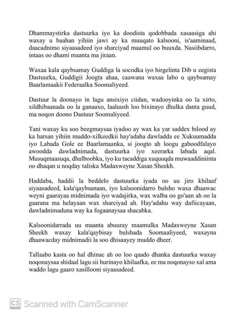 In uu dhismo Baarlamaan Labaad ,waxaa sababay maarayn xumada siyaasadeed ee Xasan Shiikh.