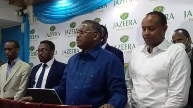 Xidlhibaannada oo tiro ahaan dhan 15 mudane ayaa shir jaraa’id oo ay ku qabtay hotel Jazeera, waxay guddoomiyaha barlamaanka ku eedeeyeen inuu daba ka riixayo inuu barlamaanku galo fowdo iyo khalalaase ay madaxtooyada dabada ka riixayso.